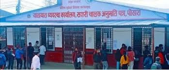 यातायात व्यवस्था कार्यालय कास्कीमा बाइक स्कुटर ट्रायल निशुल्क गरिएकाे छ । सवारी चालक अनुमति पत्रका लागि