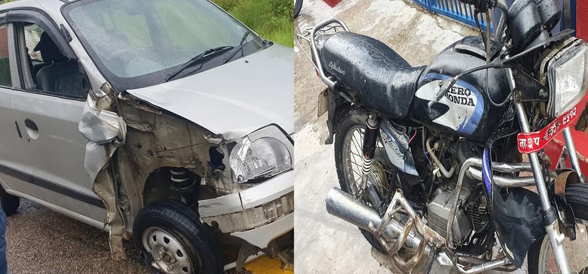 ‘चन्द्रनिगाहपुरबाट निजगढ तर्फ जाँदै गरेको ना ३ प ९५१२ नम्बरको मोटरसाइकललाई हेटौँडाबाट चन्द्रनिगाहपुर तर्फ जाँदै गरेको बा ६ च ३५२६ नम्बरको कारले ठक्कर दिँदा दुर्घटना भएको हो,’ डीएसपी गिरीले भने, ‘कार चालक हेटौँडा- १२ घर भएका ४३ वर्षीय कुमार पोखरेललाई पक्राउ गरिएको छ ।’