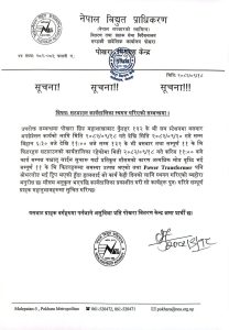 प्राधिकरणले सूचनामार्फत ग्राहक वर्गमा पर्न जाने असुविधाप्रति क्षमा समेत मागेको छ । अब मौसममा पूर्ण सुधार आएपछि मात्र नयाँ तालिका सार्वजनिक गरेर सबस्टेसनको अपग्रेडेसन काम अघि बढाइने पोखरा वितरण केन्द्रले बताएको छ ।