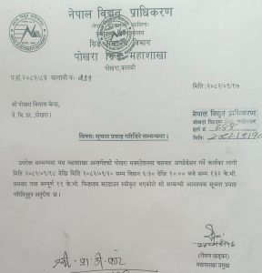 पोखरामा शुक्रबारदेखि चार दिनसम्म बिजुलीको लाइन काटिने भएको छ ।
