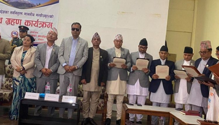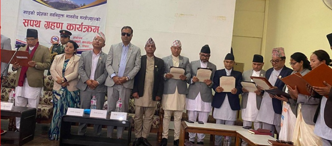 गण्डकी प्रदेशका नवनियुक्त ८ मन्त्रीले पद तथा गोपनियताको सपथ लिएका छन् । नवनियुक्त मन्त्रीहरुलाई गण्डकी प्रदेश प्रमुखले पद तथा गोपनियताको सपथ गराएका हुन् । नेकपा एमाले र नेपाली कांग्रेसको गठबन्धन सरकारमा दुवै दलका तर्फबाट ४–४ जना मन्त्री थपिएका छन् ।